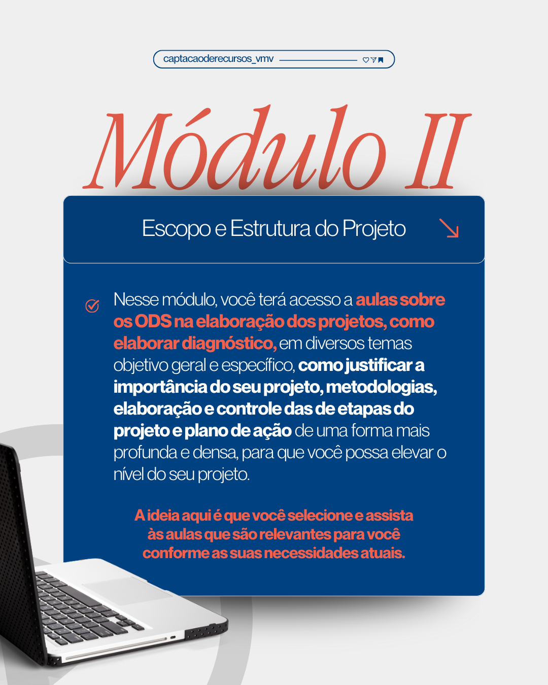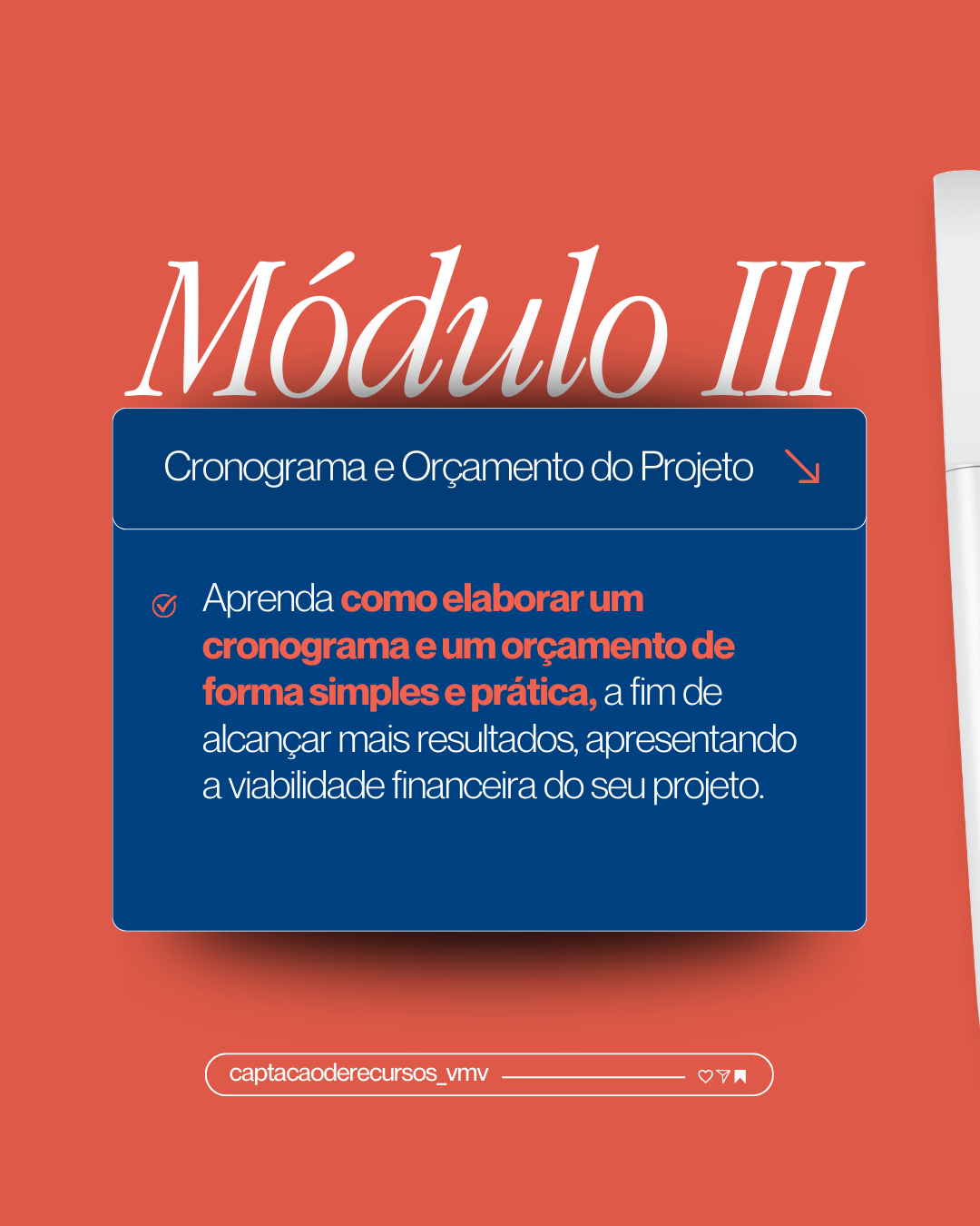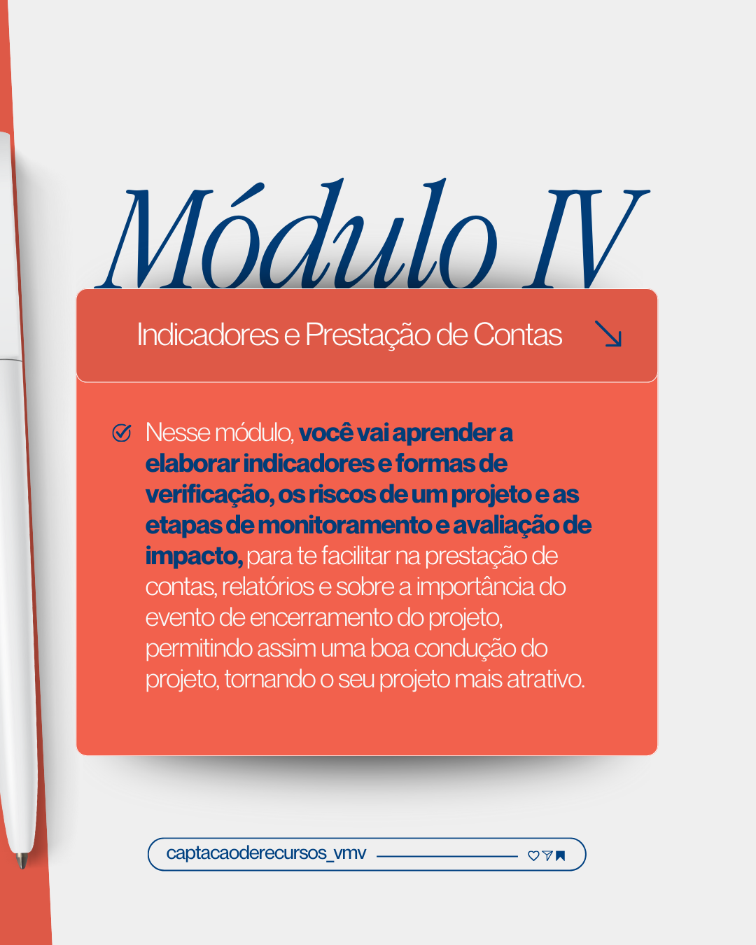 Você aprende tudo: diagnóstico, escopo, orçamento, prestação de contas, indicadores e muito mais.